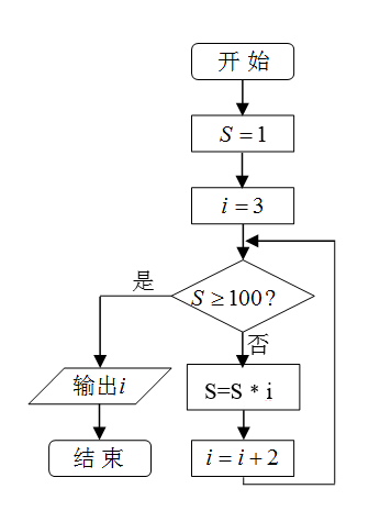 第五次进入循环体后S=7+4=11,此时i=5,退出循环。