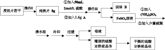 亚铁盐在空气中易被氧化,但是形成复盐可稳定存在。硫酸亚铁铵[(NH4)2SO4·FeSO4·6H2O 商品名莫尔盐]是一种重要的化学试剂,实验室用废铁片制取硫酸亚铁铵的流程如下方案一所示: