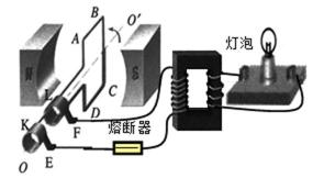 图甲是小型交流发电机的示意图,两磁极N、S间的磁场可视为水平方向的匀强磁场,