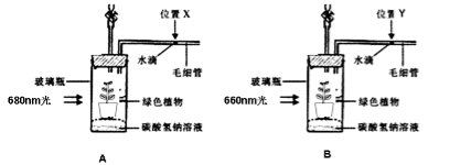 在光合作用的研究过程中,有科学家发现,当绿色植物和藻类在较长波长的光(如680nm)和较短波长的光(如660nm)下进行光合作用时,比只用白光的光能效率低得多。某同学设计如下的实验,探究这二种波长的光是否有光合成的增进效应(是指两种不同波长的光组合在一起作用时,光合成就以高效率进行,其效率比一种光单独起作用的效率之和大得多的现象)