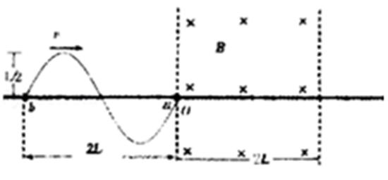 18.如图所示,将一根绝缘硬金属导线弯曲成一个完整的正弦曲线形状,它通过两个小金属环a、b与长直金属杆导通,在外力F作用下,正弦形金属线可以在杆上无摩擦滑动.杆的电阻不计,导线电阻为R,ab间距离为2L,导线组成的正弦图形顶部或底部到杆距离都是