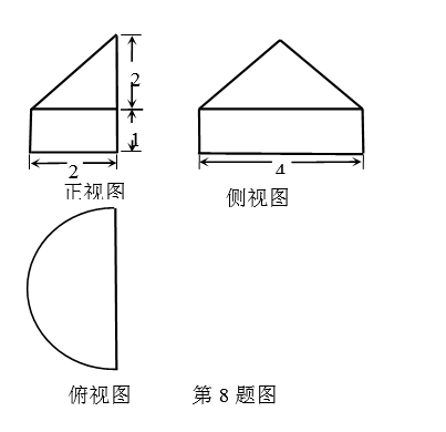 此几何体为半个圆锥与半个圆柱的组合体,体积