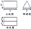 由三视图可知此几何体为一个三棱柱,其直观图如图:底面三角形ABC为底边AB边长为2的三角形,AB边上的高为AM=a,侧棱AD⊥底面ABC,AD=3,