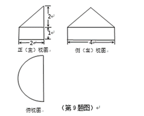 某几何体的三视图如图所示,其俯视图是由一个半圆与其直径组成的图形,则此几何体的体积是