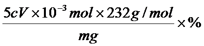 Fe3O4样品,溶于稀盐酸,配制成100mL溶液;取出10.00ml可得m g Fe3O4 样品中Fe3O4物质的量为:5cV×10-3 mol