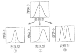 (2)右图表示自然选择对种群的3种作用类型,图②代表长颈鹿种群的选择类型。具有中等体型的麻雀个体被选择保留下来,该选择类型可由图_____代表。这三种选择类型时,最易产生新种的是图________。
