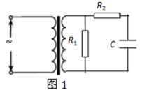 如图1所示,理想变压器原、副线圈匝数比为10∶1,R1=20Ω,R2=30Ω,C为电容器。已知通过R1的正弦交流电如图2所示,则