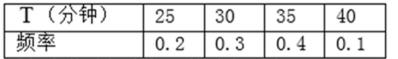 以频率估计概率得T的分布列为
