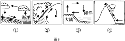 图6中所示地理现象成因与上述实验原理相同的是( )