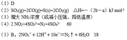 (5)汽车尾气中常含有D和CO ,二者在催化剂作用下可以大部分转化为两种对空气无污染的物质,已知: