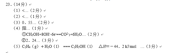 (4)是使原料有较大的转化率 (其它合理答案均可给分) (5)①C2H5OH(l) + 3O2(g) =2CO2(g) + 3H2O(l); △H=-1366.89kJ/mol ②C2H5OH-12e-+16OH-=2CO32-+11H2O (6)减小