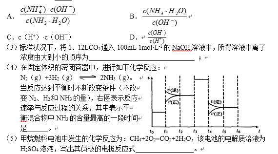 (2)NH3极易溶于水,其水溶液俗称氨水。用水稀释0.1mol·L-1的氨水,溶液中随着水量的增加而减小的是 ( )(填序号)。