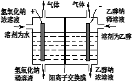(3)某科研组设计见如图装置,利用电解乙醇和氢氧化钠制取乙醇钠(阳离子交换膜只允许Na+通过)。电解时阳极产成的气体是 ,阴极发生的电极反应式为 。