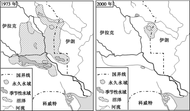 下图为两河流域河口地区1973年和2000年湿地面积分布示意图。