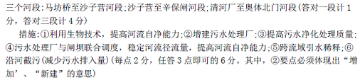 (2) 疏浚河道;加固堤防;加强雨情和水情监测预报;制定防灾减灾应急预案。43.(1)个别微生物的数量从Ⅱ到V河段先增加后减少;微生物种数量从Ⅱ到V河段先减少后增加;(1分)两者呈负相关。