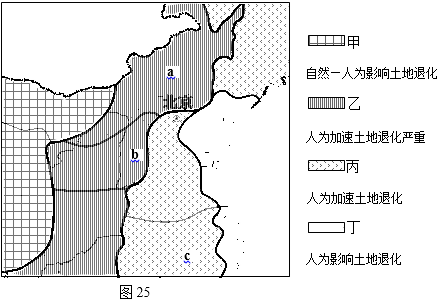 图25为我国部分地区不同土地退化类型分布示意图。读图回答下列问题。
