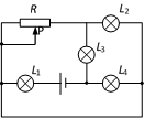如图所示,电源电动势为ε,内阻为r,当滑动变阻器的滑片P处于图中R的中点位置时,小灯泡L1、L2、L3、L4均正常发光。若将滑片P略向左滑动,小灯泡变亮的是( )