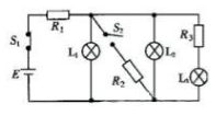 如图所示电路中,电键S闭合后,四个灯泡都能发光,某时刻因L4灯丝烧断而突然熄灭,其它三个灯仍能发光,可以观察到的情况是()