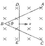 21.如图所示,在磁感应强度为B的匀强磁场中有固定的金属框架ABC,已知∠B=0,导体棒DE在框架上从B点开始在外力作用下,沿垂直DE方向以速度V匀速向右平移,使导体棒和框架构成等腰三角形回路。设框架和导体棒材料相同,其单位长度的电阻均为R,框架和导体棒均足够长,不计摩擦及接触电阻。关于回路中的电流I和电功率P随时间t变化的下列四个图象中正确的是( )