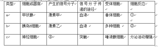 30.Ⅰ.下表示细胞信息传递的三种类型。请分析回答下列问题。