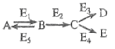 右图表示细胞中某条生化反应链,图中E1~E5代表不同的酶,A~E代表不同的化合物,据图判断下列叙述中正确的是