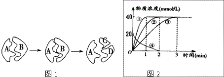下图1表示酶促反应,图2表示图1所示反应过程中有关物质的浓度随时间变化,下列叙述不正确的是( )