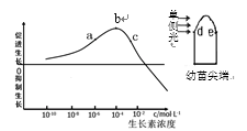 考查刺激作用是否均匀及生长素作用两重性相关知识,难度适中。