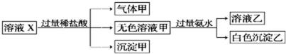 ②取10mL该溶液于试管中滴加Ba(NO3)2溶液,加稀硝酸酸化后过滤得到0.03mol白色沉淀甲,向滤液中加入AgNO3溶液未见沉淀产生。