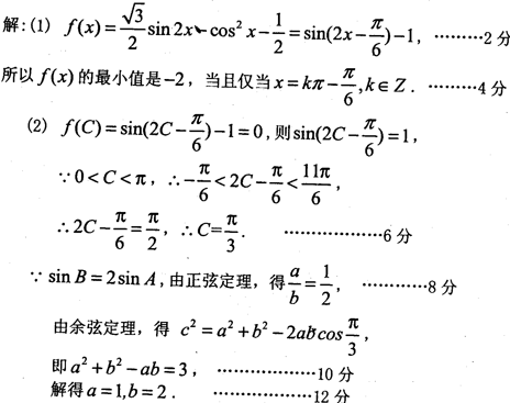 (2)设△ABC的内角A,B,C的对边分别为a,b,c且c=