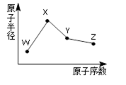 W、X、Y、Z是四种常见的短周期元素,其原子半径随原子序数变化如右下图。已知W