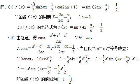 (Ⅱ)设△ABC的三边a、b、c满足b2=ac,且边b所对的角为x,求此时f(x)的值域.
