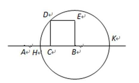 如图,设C为线段AB的中点,BCDE是以BC为一边的正方形,以B为圆心,BD为半径的圆与AB及其延长线相交于点H及K。