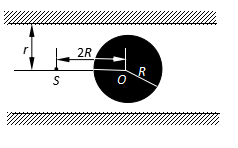 (2)内表面只反射而不吸收光的圆筒内有一半径为R的黑球,距球心为2R处有一点光源S,球心O和光源S皆在圆筒轴线上,如图所示。若使点光源向右半边发出的光最后全被黑球吸收,则筒的内半径r最大为多少?