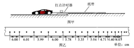 22.某活动小组为测量一电动小车的额定功率,将电动小车、纸带和打点计时器(打点周期为0.02 s)按如图甲所示安装,接通电源后使电动小车以额定功率由静止开始运动,达到最大速度一段时间后关闭小车电源,待小车静止时再关闭打点计时器。图乙是同学们打出纸带的一部分(最右边的点迹最后打出)。