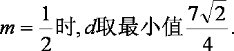 (3)是否存在实数m,使△ABQ是以Q为直角顶点的直角三角形?若存在,求出m 的值;若不存在,说明理由。