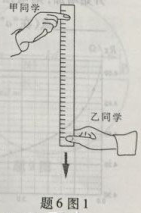 6.(1)同学们利用如题6图1所示方法估测反应时间。