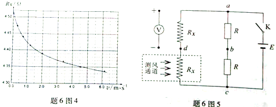 ④为了通过电压表的示数来显示风速,同学们设计了如题6图5所示的电路.其中