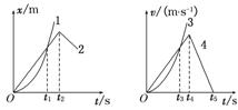2.如图所示的x-t图象和v-t图象中,给出的四条曲线1、2、3、4代表四个不同物体的运动情况,关于它们的物理意义,下列描述正确的是( )