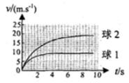 17.在离地相同高度处,质量分别为ml与m2的球1与球2同时由静止开始下落,由于空气阻力的作用,两球在抵达地面前均已达到匀速运动状态。已知空气阻力与球的下落速度v成正比,即f=-kv(k>0),且两球的比例常数k完全相同,两球下落的v – t 关系如图所示,则下列叙述正确的是( )