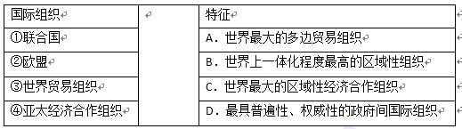 (1)找出下列国际组织与其特征之间的应关系(将对应的字母标号填写在答题卡指定位置)。