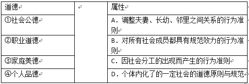 (1)找出下列道德与其属性之间的对应关系(将对应的字母标号填写在答题卡指定位置)。
