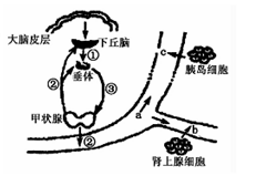 (3)当血糖浓度升高时,胰岛细胞分泌的激素c( )减少。