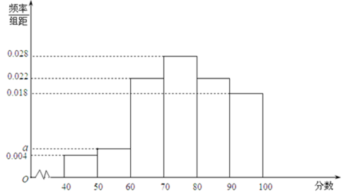 受访职工评分在[40,50)的有: 50×0.004×40=2(人),即为