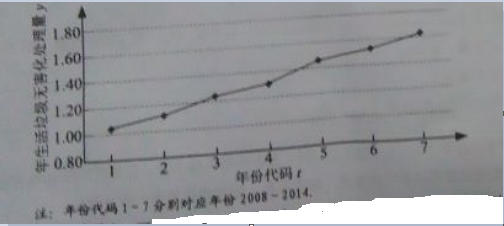 18.下图是我国2008年至2014年生活垃圾无害化处理量(单位:亿吨)的折线图