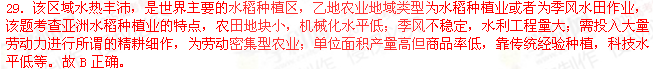 29.下列选项中,符合乙地农业地域类型特点的是( )