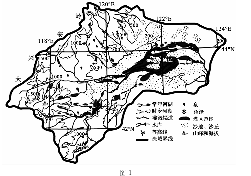 着人口增长和农牧业发展,其环境问题日益严重。下面是1995--2005年西辽河流域示意图