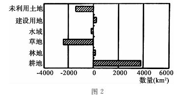 (图1)和西辽河流域各土地利用类型数量的变化示意图(图2)。据图完成下列问题。