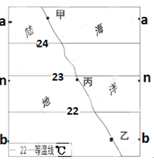16.气温的日变化一般表现为最高值出现在14时左右,最低值出现在日出前后。下图示意某区域某日某时刻的等温线分布,该日丙地的正午太阳高度达一年中最大值。a、n、b是纬度且a、n,n、b都相差1°,下列正确的是( )