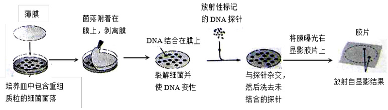 下图为通过DNA分子杂交鉴定含有某特定DNA的细菌克隆示意图。下列叙述正确的是