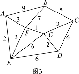 现给出该地区可铺设道路的线路图如图3,则铺设道路的最小总费用为__________。